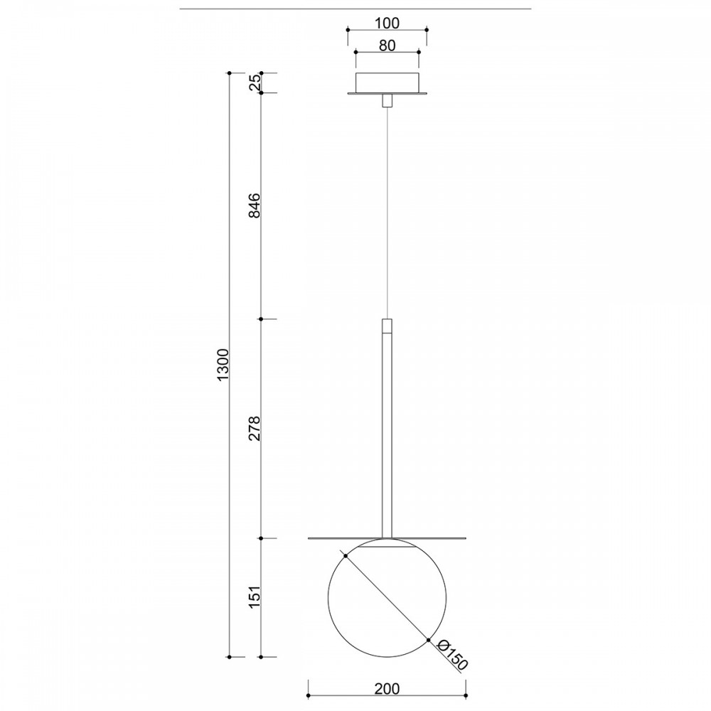 El elemento central de la composición es una pantalla de cristal blanco lechoso de 15 cm de diámetro. Difunde suavemente la luz, creando un resplandor agradable y uniforme. La pantalla está colocada sobre un disco de latón de 20 cm de diámetro, que no sólo enriquece visualmente la forma, sino que también dirige la luz hacia abajo y hacia los lados.