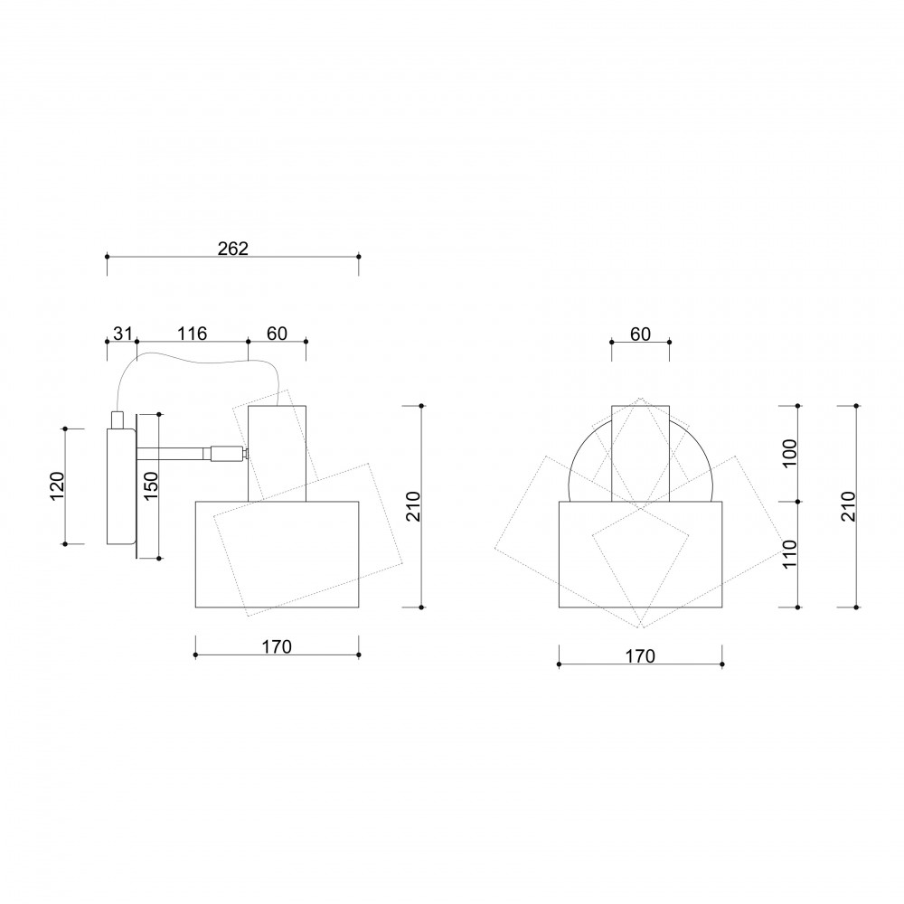 - aplique, soporte de pared - color negro (Jet Black RAL 9005) - material metal - longitud 26,2cm - anchura 17cm - altura 21cm - regulable, pantalla metálica en negro estructural ⌀17cm - soporte de pared ⌀12cm - cable trenzado, poliéster negro - rosca E27 - LED máx 15W - IP20