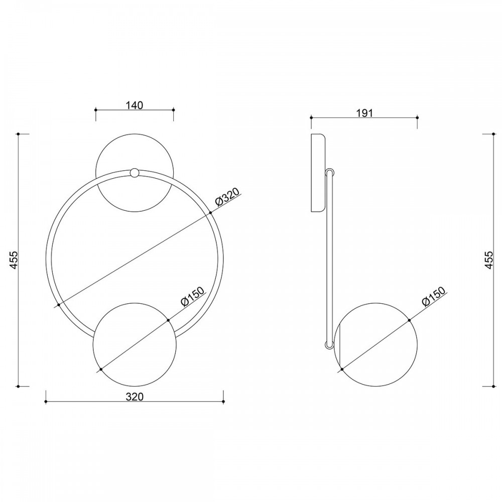 - aplique - lámpara de pared - altura 45,5 cm - profundidad 19,1 cm - difusor de cristal blanco esmerilado de 15 cm de diámetro - estructura metálica y embellecedor de techo pintados en negro estructural - cable de 2 hilos 2 X 0,75mm2 - max 12W