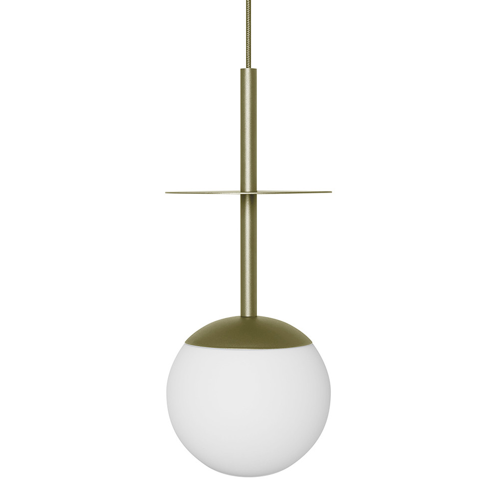 - lámpara de techo, lámpara colgante - material metal, vidrio - color verde oliva (Reed Green RAL 6013) - longitud 160cm - longitud del cable 110cm - difusor de vidrio blanco esmerilado fi 20cm - rejilla de techo estructural lacada verde oliva fi 12cm - disco de metal fi 20cm - cable bifilar 2 X 0,75mm2 en trenza de poliéster verde oliva - rosca E27 - máx 15W - IP20