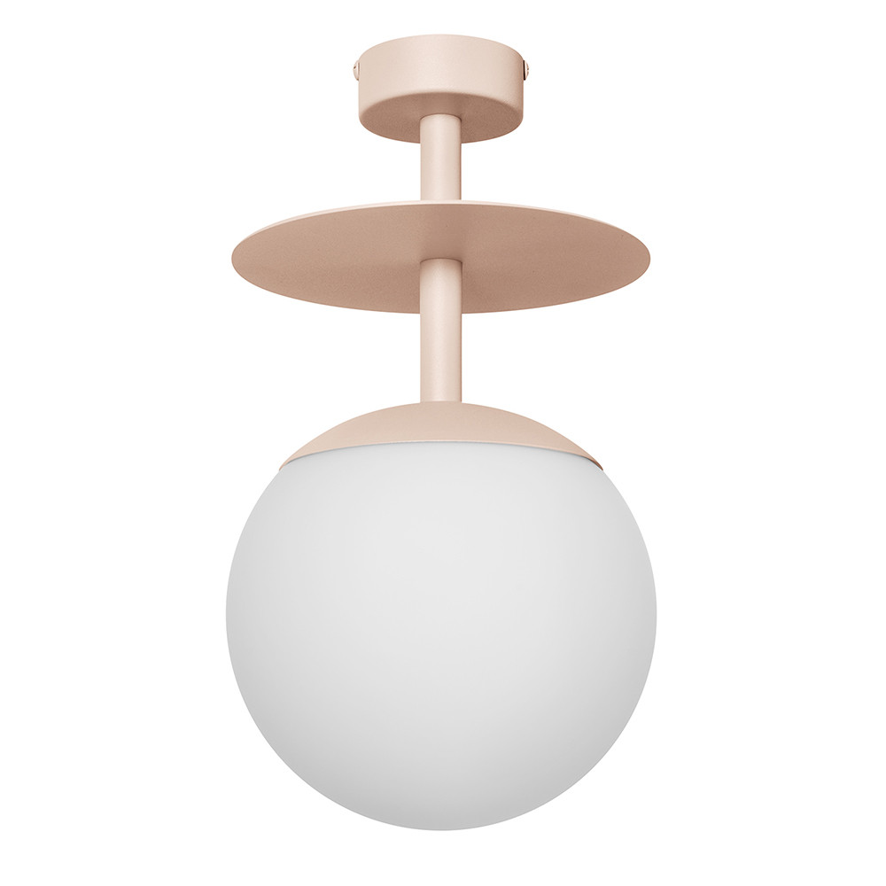-lámpara de techo - material metal, vidrio - color beige (Soft Peach) - altura 37cm - diámetro 20cm - difusor de vidrio blanco esmerilado fi 20cm - rejilla estructural de techo lacada beige fi 8cm - disco de metal fi 20cm - cable bifilar 2 X 0,75mm2 - rosca E27 - máx 15W - IP20