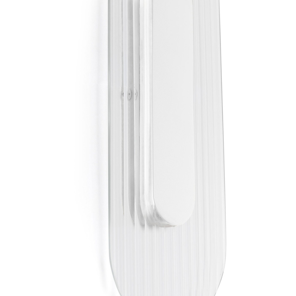 - aplique, soporte de pared - color blanco (Signal White RAL 9003) - material metal, vidrio - largo 4,3cm - ancho 15,6cm - alto 43,5cm - difusor de vidrio ondulado con elemento decorativo blanco - rejilla de metal blanco 25cm x 6,8cm - LED incorporado - potencia 3W - IP20