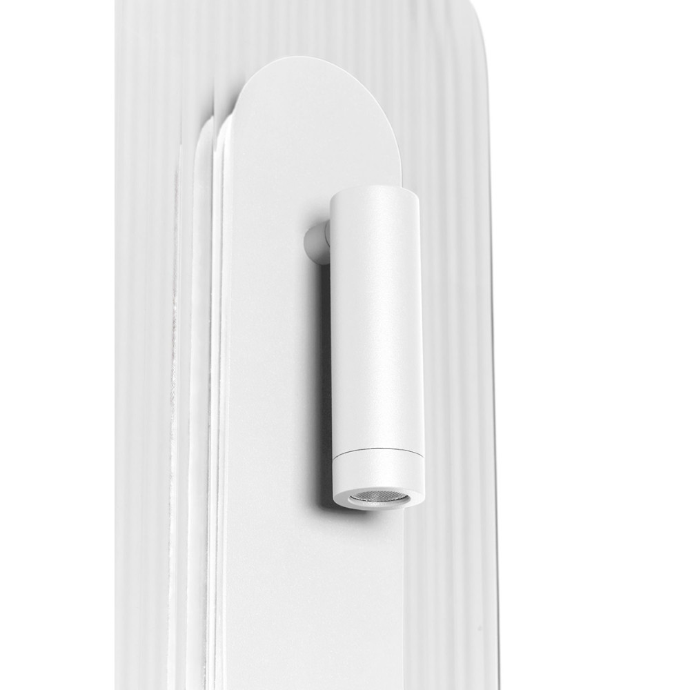 - aplique, soporte de pared - color blanco (Signal White RAL 9003) - material metal, vidrio - longitud 4,3cm - anchura 15,6cm - altura 43,5cm - difusor de vidrio ondulado con elemento decorativo blanco - reflector LED regulable 2,1W - rejilla de metal blanco 25cm x 6,8cm - LED incorporado - potencia 3W - IP20