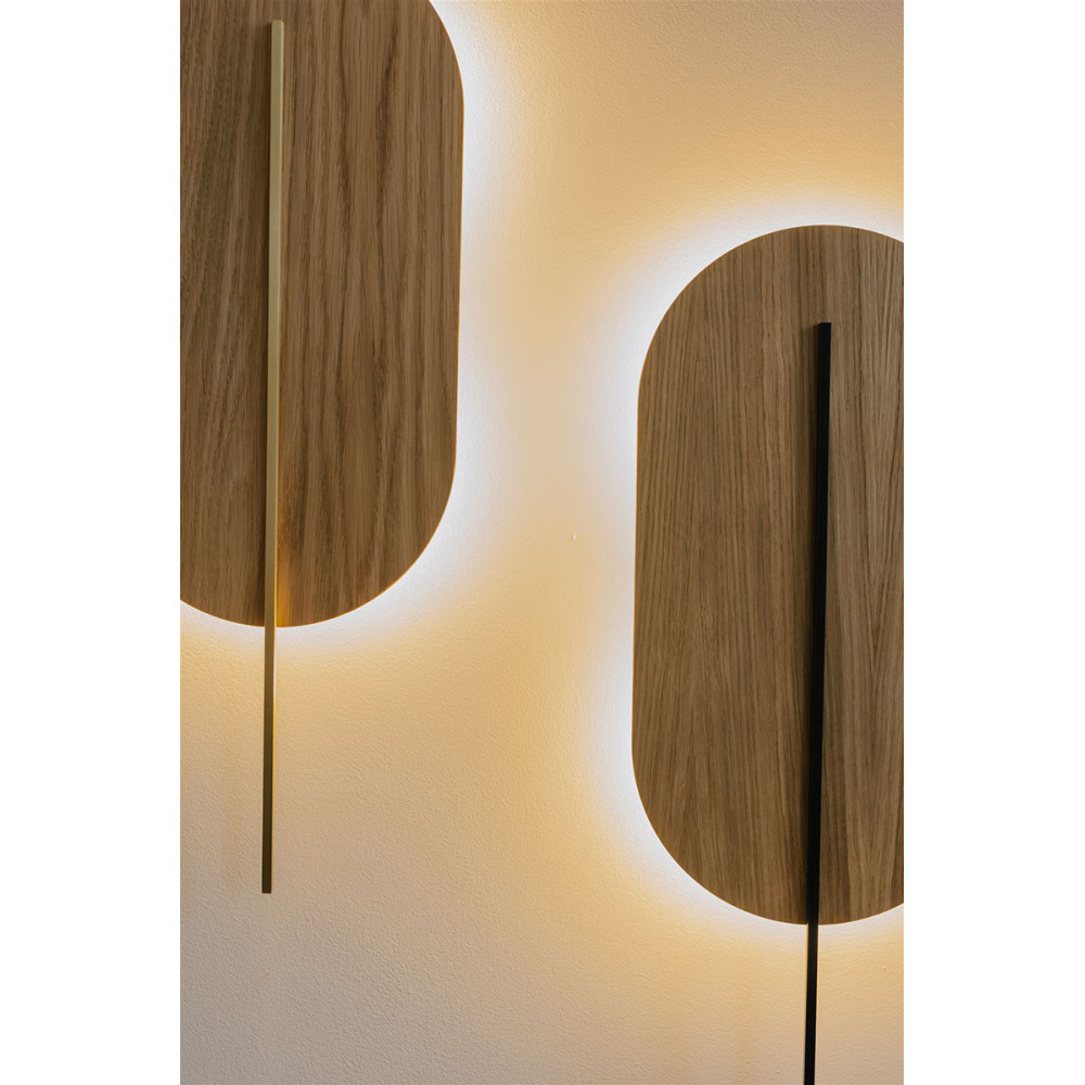 ROKKE WOOD es una lámpara de pared que representa un diálogo entre la herencia de la arquitectura modernista y una mirada fresca al diseño contemporáneo. Su forma alargada y ovalada se inspira en la sencillez y funcionalidad de los conceptos urbanos de la Gdynia de preguerra, donde la estética se subordinaba a la lógica de la forma. En esta versión acabada en madera natural, la luminaria adquiere un tono orgánico: la luz se refleja suavemente en su superficie, creando un agradable y matizado juego de claroscuros.