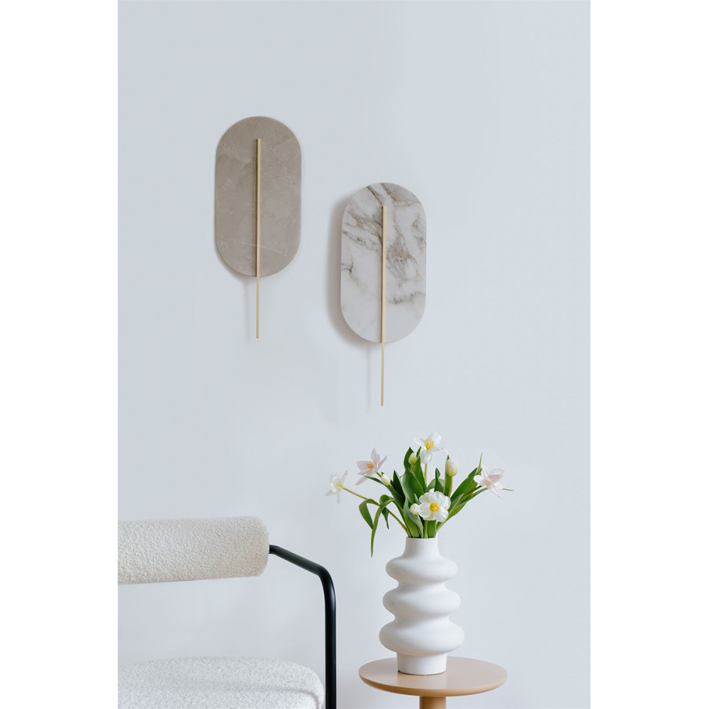 -aplique, aplique de pared - color del gres beige (Ritual Taupe) - color de la varilla a elegir: blanco, negro, melón, latón - material: metal, latón, gres esmaltado - longitud 3,8cm - anchura 21cm - altura 56,6cm - pantalla con elemento de latón (fijado con imanes al soporte de pared) - soporte de metal blanco 8x8cm - rosca 2xG9 - max 2x12W - IP20