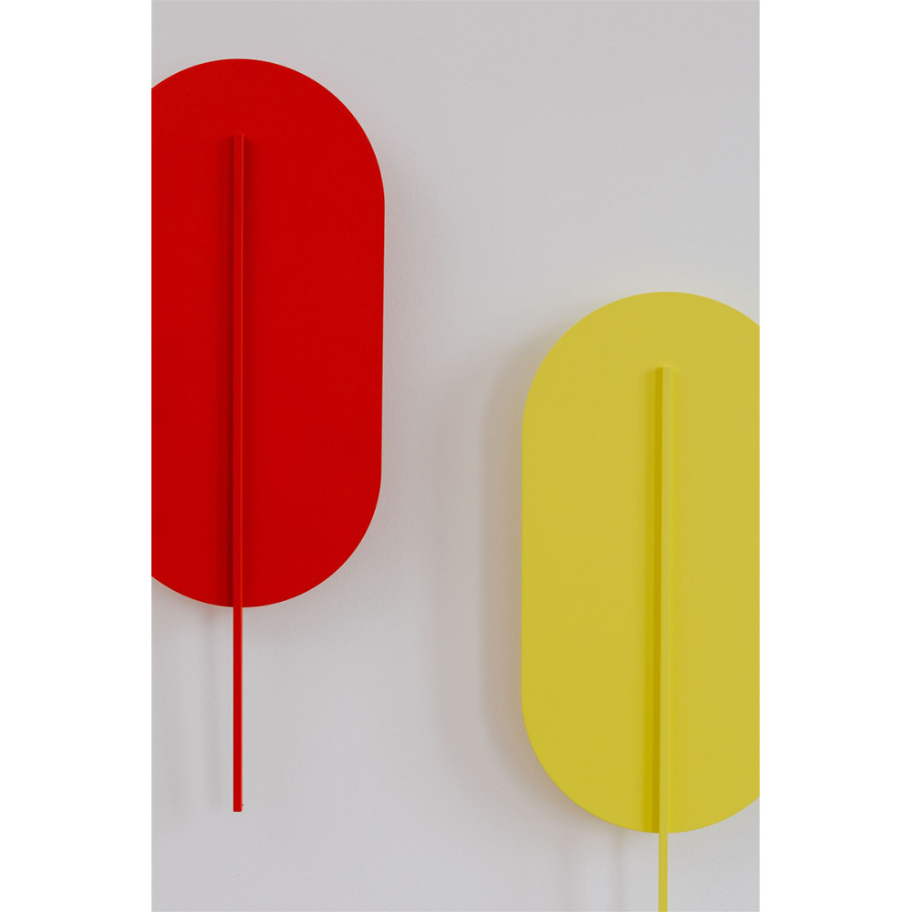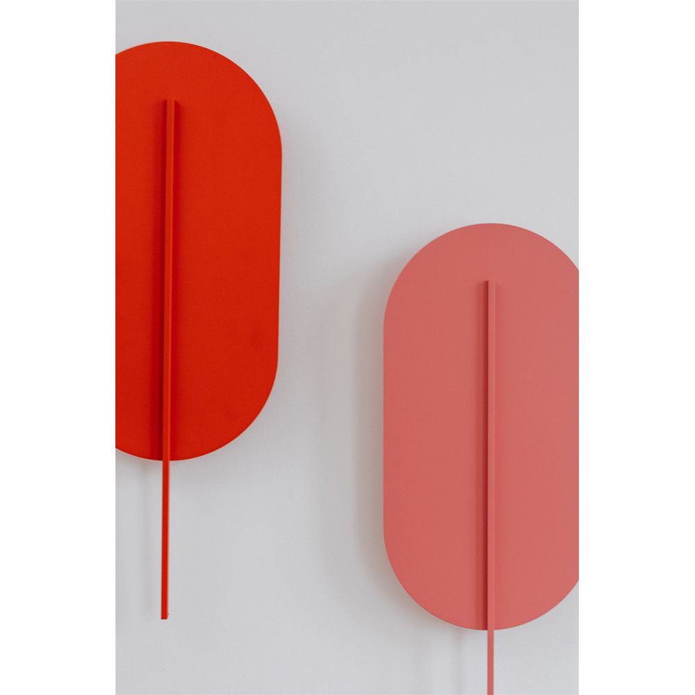 - aplique, aplique de pared - color rojo-naranja (Bermellón RAL 2002) - material metal, latón - longitud 3,8cm - anchura 21cm - altura 56,6cm - pantalla rojo-naranja con elemento decorativo (fijado con imanes al soporte de pared) - soporte de metal blanco 8x8cm - rosca 2xG9 - max 2x12W - IP20