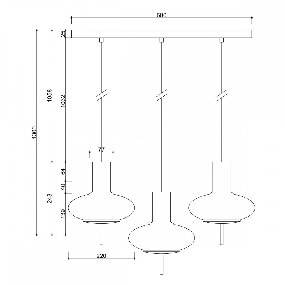 - lámpara de techo triple - metal / cristal - negro / blanco - longitud total 130cm - anchura 60cm - 3x difusor de cristal blanco mate fi 22cm - barra de techo lacada en negro estructural 60cm - cable bifilar 2 X 0,75mm2 en trenza de poliéster negro - longitud 103cm, 113cm, 103cm - rosca E27 - max 3x15W